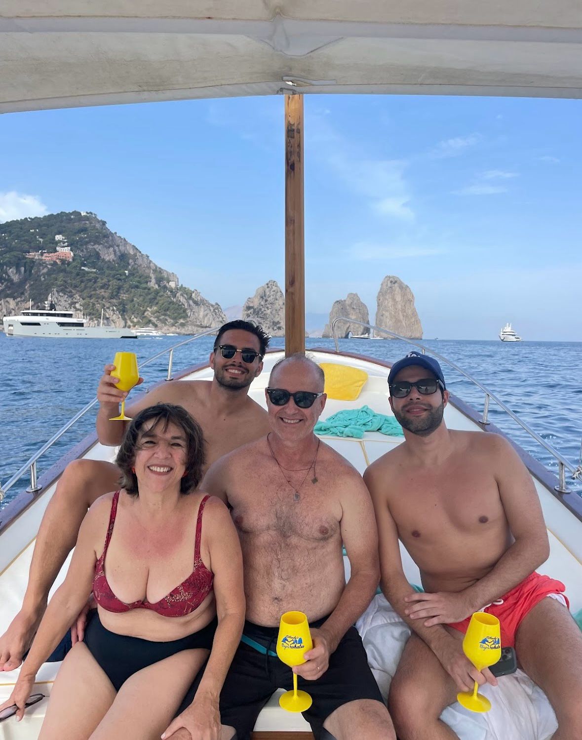 Goditi il sole mediterraneo disteso sul ponte delle nostre barche, dotate di tutti i comfort. Sorseggia una bevanda fresca mentre ammiri il panorama mozzafiato dei Faraglioni che si stagliano all'orizzonte.
